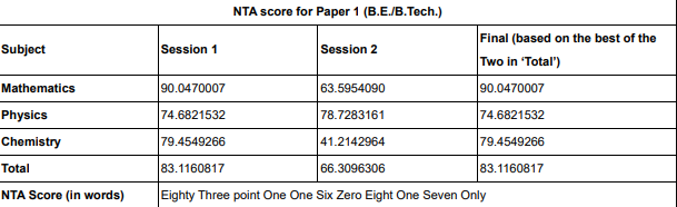 <i> This was my NTA score in 2024 Jee Mains Exam</i><br>